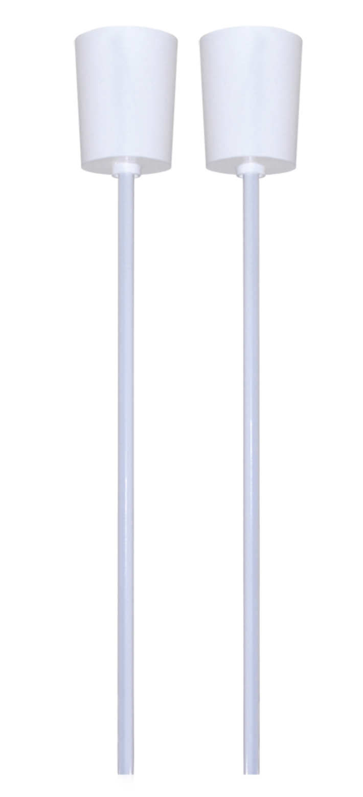 Die Pendel werden an der Leuchte fixiert und sind an der anderen Seite mit Ösen versehen. Die Leitungen sind bereits in einem der Pendelrohre verdrahtet, um den Anschluss zu erleichtern. Der Anschluss und die Befestigung an der Decke werden durch einen unauffälligen Baldachin kaschiert.