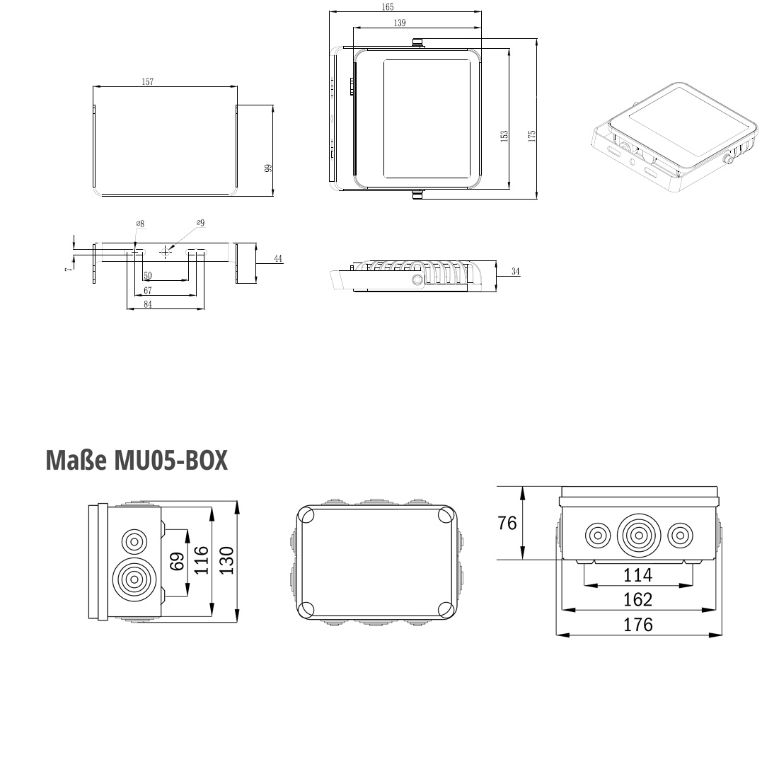 Praktischer Flutlichtstrahler der mit seiner hohen Schutzklasse von IP66 und des beschichteten Aluminiumgehäuses für Innen- und Außenbereiche geeignet ist. Durch den weiten Abstrahlwinkel der Sicherheitsleuchte, lassen sich große Flächen leicht ausleuchten. Der Überwachungsbaustein MU06 ist im mitgelieferten separaten Gehäuse verbaut.