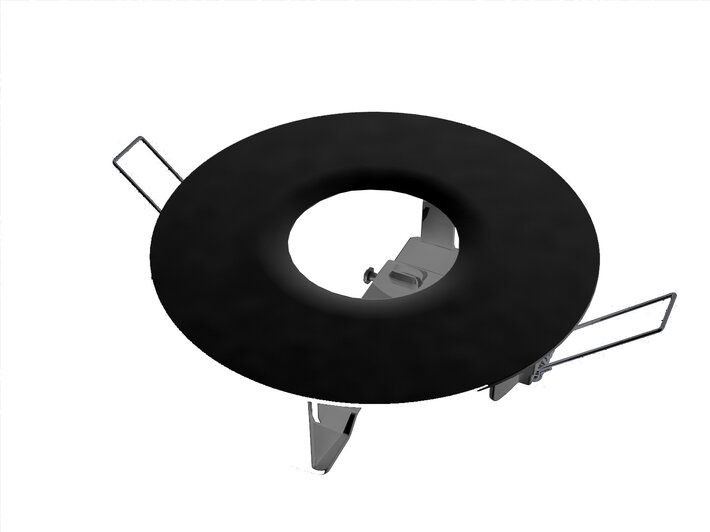 Einbaurahmen mit Klemmfedern und Zugentlastung, zur Aufnahme der ILD in allen Versionen. Material Kunststoff, Farbe schwarz RAL 9005. Mit diesem Zubehör können alle Varianten der Sicherheitsleuchte ILD, die als Deckenaufbauleuchte konzipiert ist, in die Decke eingebaut werden.