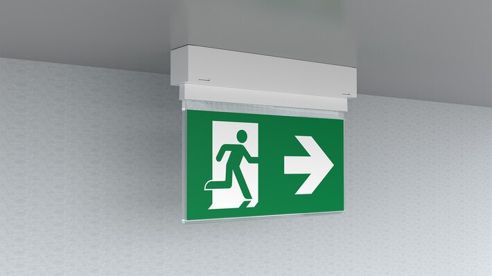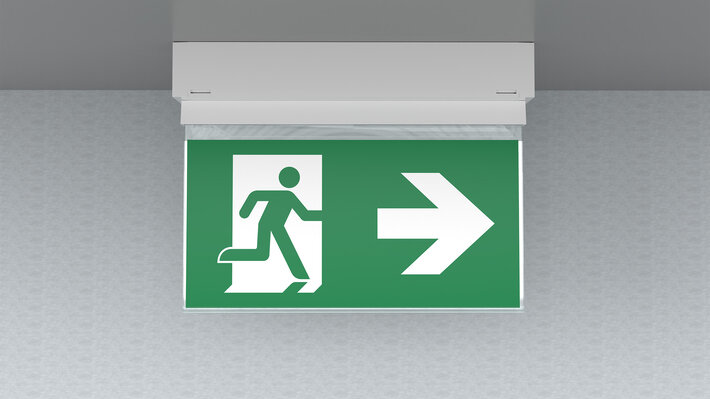 Automatische Überwachung der Sicherheitsleuchte mit SelfControl. Display-Scheibenleuchte mit integrierter Lichtverteilung zur gleichmäßgien Ausleuchtung des Piktogrammes. Geeignet zur ein- oder zweiseitigen Beschriftung. Planungssicherheit ist durch werkzeuglosen, variablen Einsatz der Piktogramme vor Ort gegeben. Ein Piktogrammset entsprechend DIN ISO 7010 (Pfeil rechts, links, oben und unten) ist standardmäßig im Lieferumfang enthalten. Die Universalmontage beinhaltet die Möglichkeit die Leuchte wahlweise als Wand- oder Deckenanbau zu montieren.