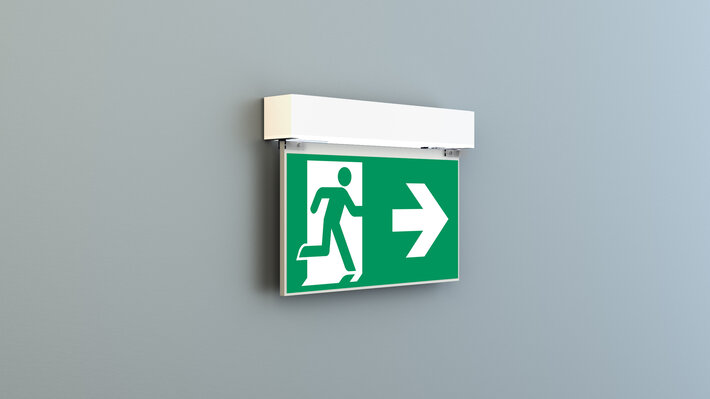 Die KBU Notleuchte kann durch auswechselbare Scheiben verschiedene Sichtweiten erreichen. Diese sind werkzeuglos auswechselbar und benötigen nicht die vollständige Demontage der Notleuchte, wodurch diese um einiges flexibler wird.
