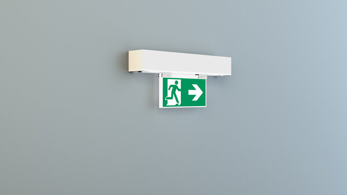 Die KBU Notleuchte kann durch auswechselbare Scheiben verschiedene Sichtweiten erreichen.