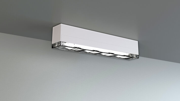 Die Universalmontage beinhaltet Wand- und Deckenanbau, sowie die Möglichkeit zum Deckeneinbau in Verbindung mit dem erhältlichen Einbaurahmen.