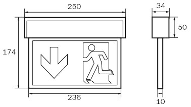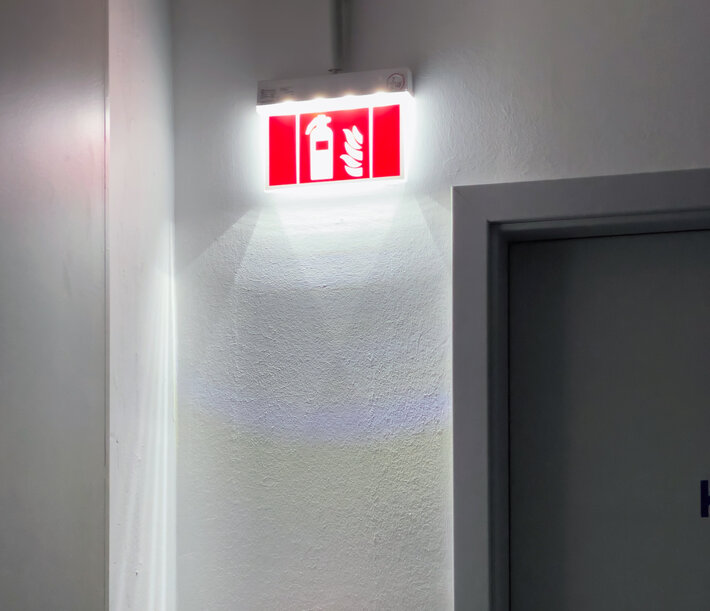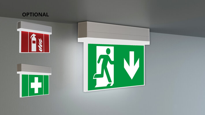 Innovative Kunststoff Rettungszeichen- und Sicherheitsleuchte für Universalmontage. Geeignet zur ein- oder zweiseitigen Beschriftung, sowie Beleuchtung von Brandbekämpfungs- als auch von Erste Hilfe Stellen, mit den nach EN 1838 min. geforderten 5 Lux an der Einrichtung.