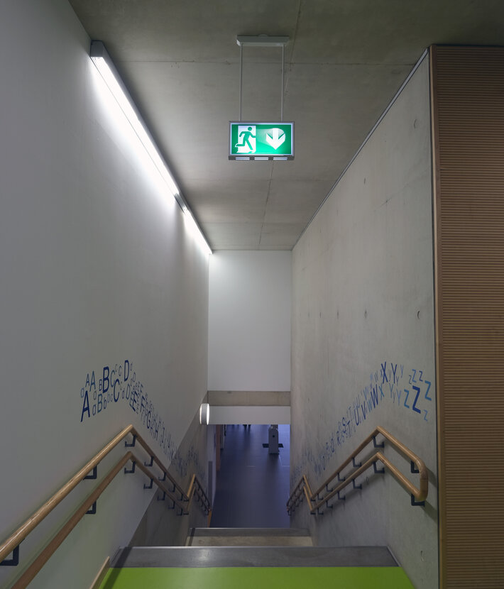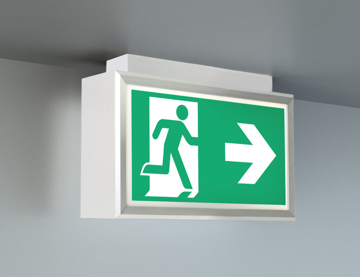 Steuerung und Überwachung über zentrales Stromversorgungssystem. Planungssicherheit ist durch werkzeuglosen, variablen Einsatz der Piktogramme vor Ort gegeben. Die Piktogramme entsprechend DIN ISO 7010 (Pfeil rechts, links, unten und oben) sind standardmäßig im Lieferumfang enthalten. Auf Anfrage kann die Beschriftung auch nach Kundenvorgabe erfolgen.