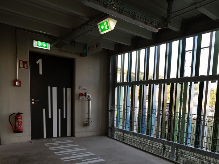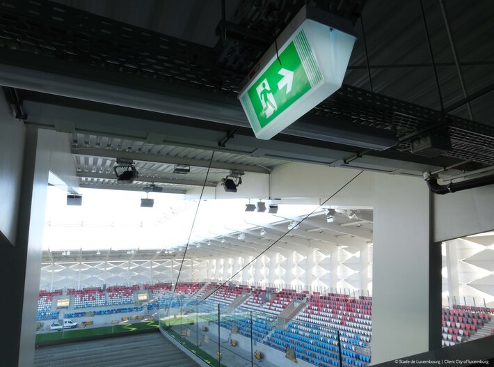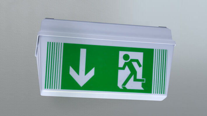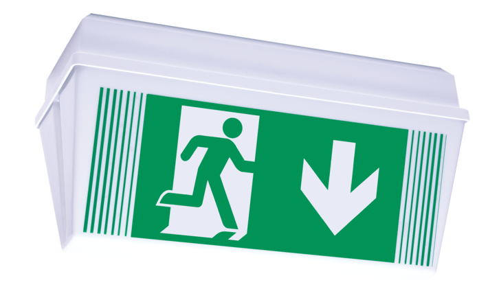 Kabelllose zentrale Steuerung und Überwachung für große Installationen von bis zu 50.000 Leuchten mit Wireless Professional. Planungssicherheit ist durch werkzeuglosen, variablen Einsatz der Piktogramme vor Ort gegeben. Die Piktogramme entsprechend DIN ISO 7010 (Pfeil rechts, links und unten) sind standardmäßig im Lieferumfang enthalten. Auf Anfrage kann die Beschriftung auch nach Kundenvorgabe erfolgen.