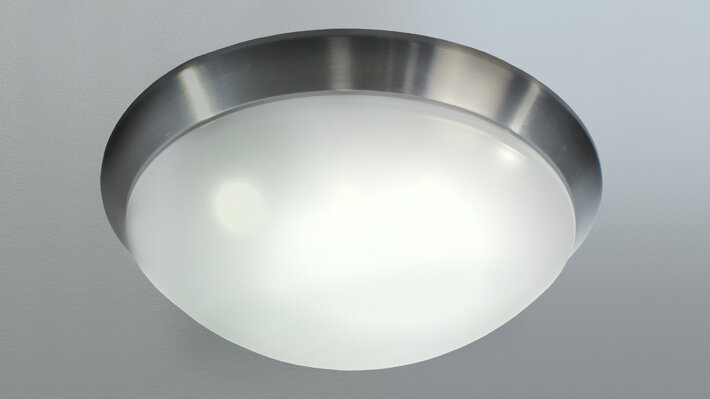 Runde Metallleuchte zur allgemeinen Beleuchtung und Ausleuchtung der Flucht- und Rettungswege nach DIN EN 60598-1, DIN EN 60598-2-22 und DIN EN 1838.