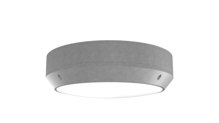 Runde Zink-Druckguß-Leuchte zur allgemeinen Beleuchtung mit integriertem Bewegungsmelder. Zur Ausleuchtung der Flucht- und Rettungswege nach DIN EN 60598-1, DIN EN 60598-2-22 und DIN EN 1838.