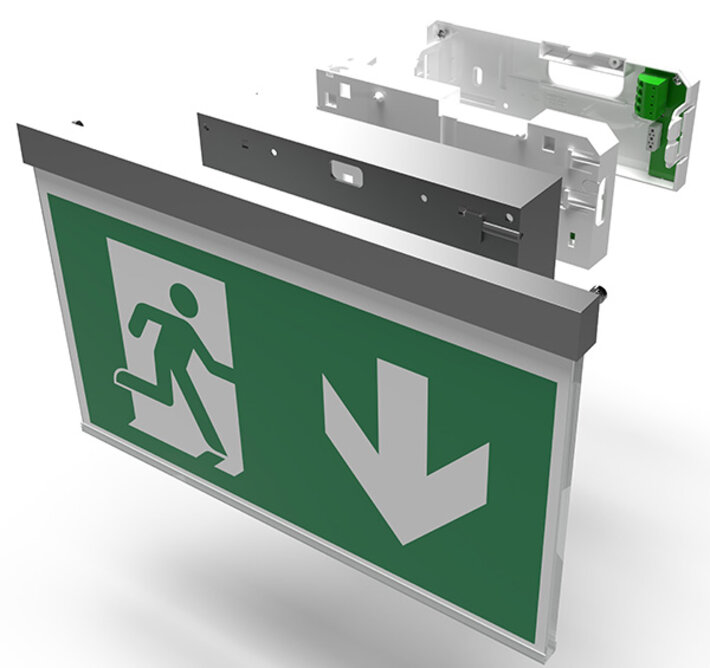 Zur deutlichen Erleichterung der Montage vor Ort wurde das Gehäuse der optisch ansprechenden Rettungszeichenleuchten der A-Serie für den Wand-/bzw. Deckenanbau konstruktiv verbessert. Auch besteht jetzt die Möglichkeit, eine optionale seitliche Kabeleinführung zu realisieren, was die Anpassung an die jeweilige Einbausituation deutlich flexibler macht. Das Gehäuse bietet nun auch die Möglichkeit der korrekten Ausrichtung der Leuchte an der Wand. Weiterhin ist der Leuchtenaufsatz nach dem Öffnen des Gehäuses durch Verwendung von Steckkontakten stromlos.
