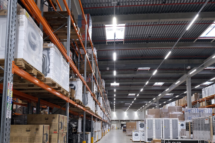 Für einen großen Lebensmittelhändler wurde ein neues Zentrallager in Luxemburg benötigt. Die RP-Group lieferte dabei die Not- und Sicherheitsbeleuchtung für die Lagerhalle und den zusammenhängenden Bürobereich.