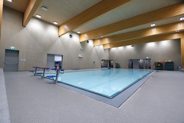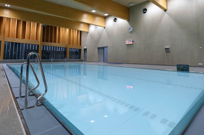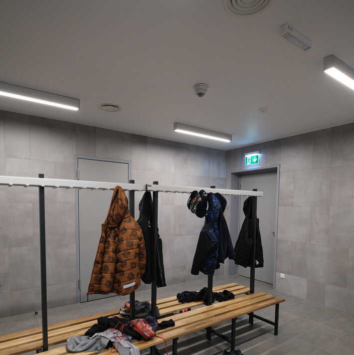 Im zweiten Gebäudeabschnitt mit Schwimmbad, Sporthalle und Internat wäre eine Lösung mit einer zentralen Stromversorgung denkbar gewesen. Aber die dafür notwendige Verlegung mit E30/E60 Verkabelung wäre zu aufwendig und somit nicht die wirtschaftlichste Lösung gewesen. Aus diesem Grund entschied man sich für das Wireless Professional System, wodurch keine E30/E60 Verkabelung benötigt wird.