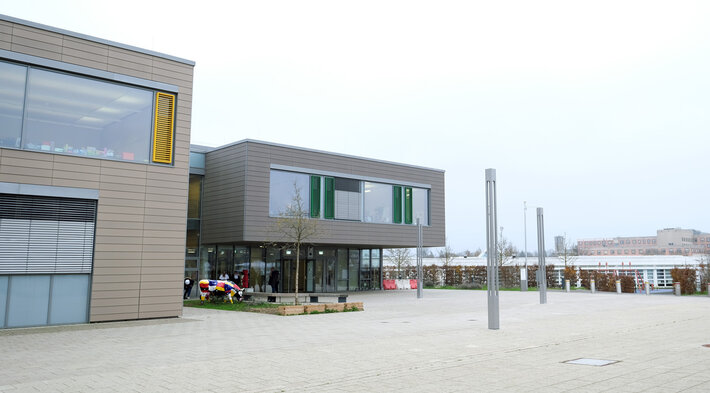Insgesamt besteht das Gebäude aus drei Gebäudeteilen. Das Hauptgebäude beinhaltet die Klassenzimmer, Therapieräume und die Kantine. Im zweiten Gebäudeteil sind das Schwimmbad, die Sporthalle und das Internat untergebracht. Der dritte Gebäudekomplex ist noch im Bau und wird ein Gymnasium sein.