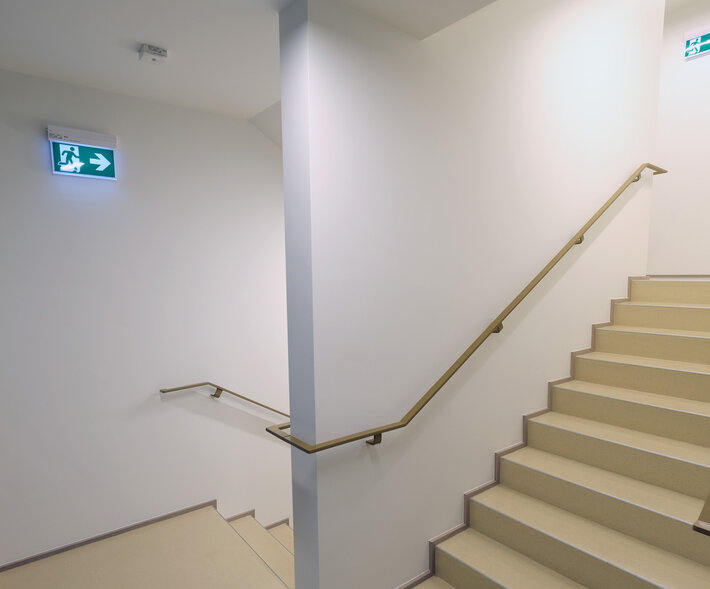 So konnten weitere Maßnahmen, wie die Integration vorhandener Allgemeinbeleuchtung als Sicherheitsbeleuchtung zusammen geplant und umgesetzt werden. Allein durch diese Maßnahme konnte der Installationsaufwand und dementsprechend auch die Kosten reduziert werden. Selbstverständlich wurden hier alle Leuchten im Vorfeld geprüft und entsprechend zertifiziert.