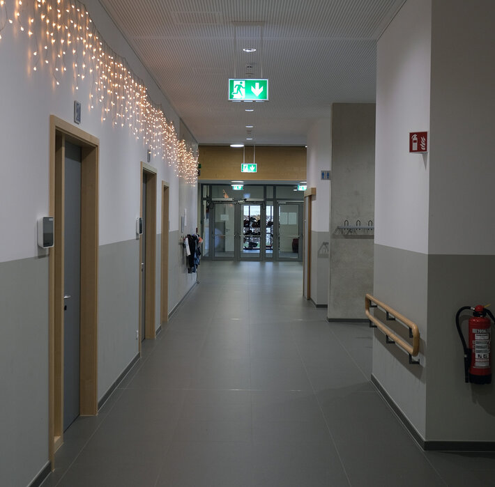 Für das Hauptgebäude mit den Klassenräumen und der Kantine wurde sich bei der Sicherheitsbeleuchtung für ein zentrales Stromversorgungssystem entschieden. Die zentralen Stromversorgungssysteme zeichnen sich insbesondere durch den geringen Wartungs- und Instandhaltungsaufwand aus.