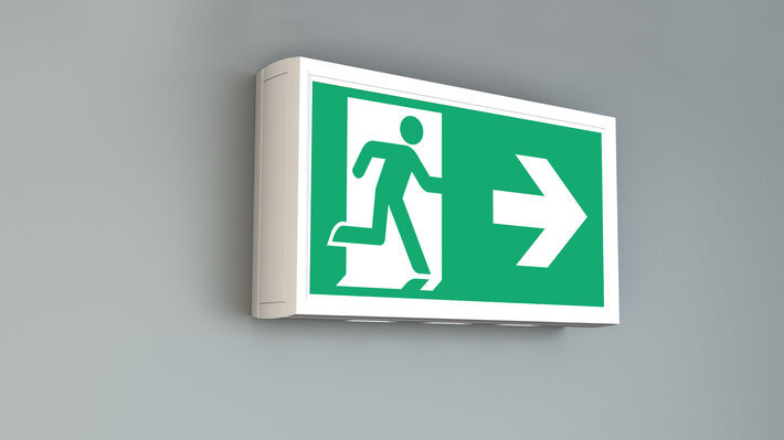 Control and monitoring via central power supply system. Planning certainty is provided by tool-free, variable use of the pictograms on site. A set of pictograms corresponding to DIN ISO 7010 (arrow to the right, left, up and down) is supplied as standard.