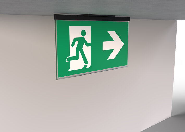 Surveillance automatique de la lampe de sécurité avec SelfControl. Two requested pictograms (arrow to the right, left, up, down or white) are supplied as standard.