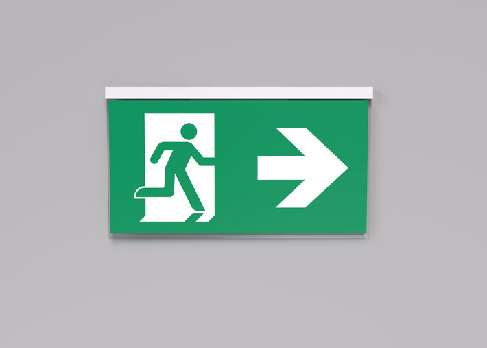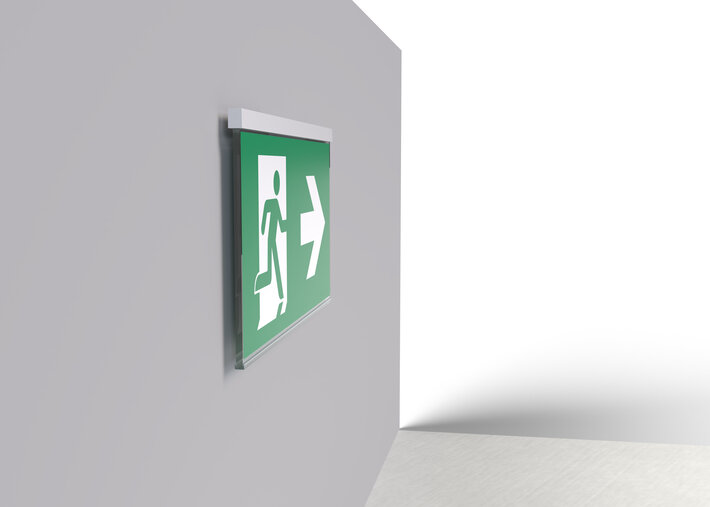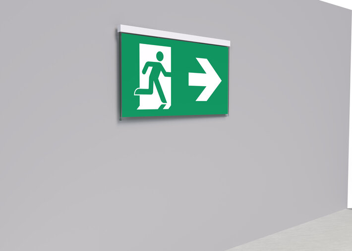 Surveillance automatique de la lampe de sécurité avec SelfControl. Le set de pictogrammes souhaité (flèche à droite, à gauche, en haut ou en bas) est contenu dans la livraison standard.