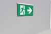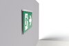 Luminaire moderne à pictogramme de secours en zinc moulé sous pression pour montage mural encastré, pour la signalisation des issues de secours et des voies d’évacuation.