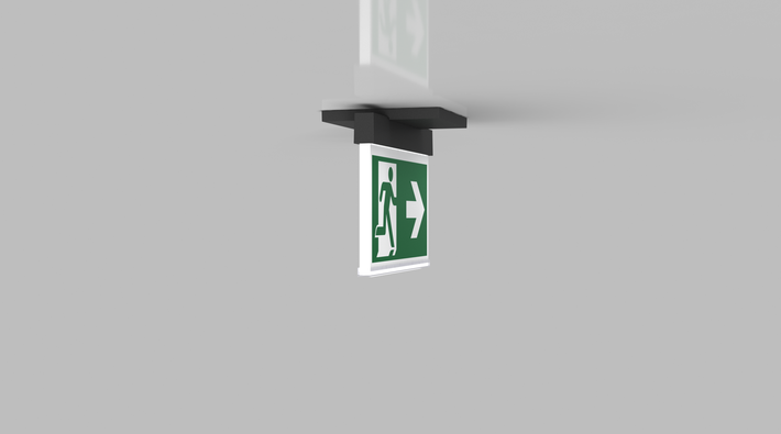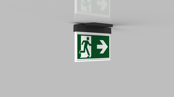 Luminaire moderne à pictogramme de secours en zinc moulé sous pression pour montage encastré au plafond. Grâce à son diamètre d’encastrement de 68 mm, ce luminaire s’intègre élégamment dans de nombreux environnements La signalisation des issues de secours et des voies d’évacuation s’effectue au choix sur une face ou sur les deux faces.