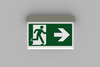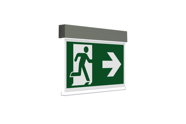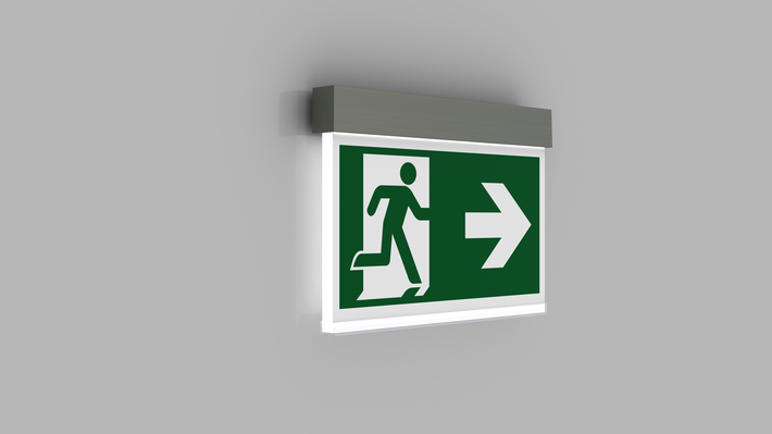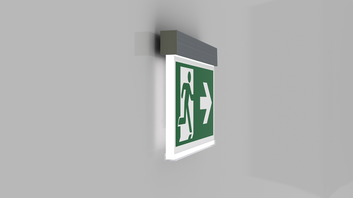 Surveillance automatique de la lampe de sécurité avec SelfControl. Impossible de se tromper lors de la planification grâce aux pictogrammes logiques imprimés. Les pictogrammes conformes à la norme DIN ISO 7010 (flèches à droite, à gauche et en bas) sont contenus dans la livraison standard. L’impression peut également être faite sur demande en fonction des prescriptions du client.