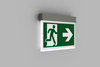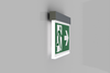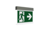 Luminaire moderne à pictogramme de secours en zinc moulé sous pression pour montage mural encastré, pour la signalisation des issues de secours et des voies d’évacuation.