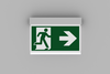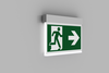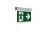 Luminaire moderne à pictogramme de secours en zinc moulé sous pression pour montage mural encastré, pour la signalisation des issues de secours et des voies d’évacuation.