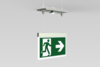 Luminaire moderne à pictogramme de secours/de sécurité en zinc moulé sous pression avec suspension par câble pour montage encastré au plafond. La signalisation des issues de secours et des voies d’évacuation s’effectue au choix sur une face ou sur les deux faces. La technologie Duo assure, à l’aide d’une LED supplémentaire, la signalisation lumineuse des voies d’évacuation et des issues de secours en cas de panne de courant.
