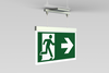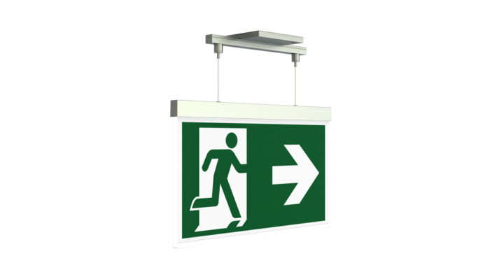 Surveillance automatique de la lampe de sécurité avec SelfControl. Impossible de se tromper lors de la planification grâce aux pictogrammes logiques imprimés. Les pictogrammes conformes à la norme DIN ISO 7010 (flèches à droite, à gauche et en bas) sont contenus dans la livraison standard. L’impression peut également être faite sur demande en fonction des prescriptions du client.