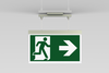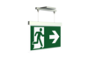Luminaire moderne à pictogramme de secours en zinc moulé sous pression avec suspension par câble pour montage encastré au plafond. Grâce à son diamètre d’encastrement de 68 mm, ce luminaire s’intègre élégamment dans de nombreux environnements. La signalisation des issues de secours et des voies d’évacuation s’effectue au choix sur une face ou sur les deux faces.