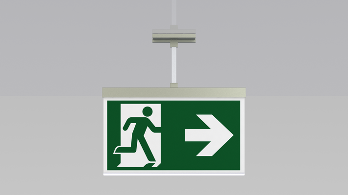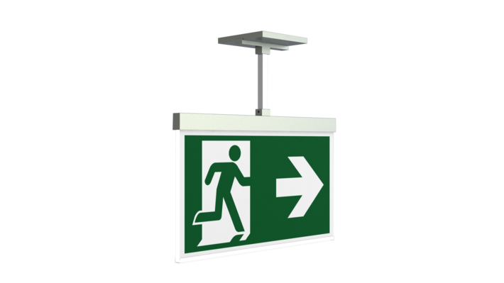 Surveillance automatique de la lampe de sécurité avec SelfControl. Impossible de se tromper lors de la planification grâce aux pictogrammes logiques imprimés. Les pictogrammes conformes à la norme DIN ISO 7010 (flèches à droite, à gauche et en bas) sont contenus dans la livraison standard. L’impression peut également être faite sur demande en fonction des prescriptions du client.
