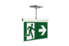 Luminaire moderne à pictogramme de secours en zinc moulé sous pression avec suspension pour montage encastré au plafond. Grâce à son diamètre d’encastrement de 68 mm, ce luminaire s’intègre élégamment dans de nombreux environnements. La signalisation des issues de secours et des voies d’évacuation s’effectue au choix sur une face ou sur les deux faces.