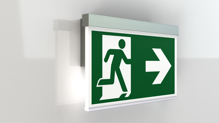 Surveillance automatique de la lampe de sécurité avec SelfControl. Impossible de se tromper lors de la planification grâce aux pictogrammes logiques imprimés. Les pictogrammes conformes à la norme DIN ISO 7010 (flèches à droite, à gauche et en bas) sont contenus dans la livraison standard. L’impression peut également être faite sur demande en fonction des prescriptions du client.