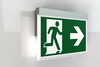 Luminaire moderne à pictogramme de secours en zinc moulé sous pression pour montage mural, pour la signalisation des issues de secours et des voies d’évacuation.