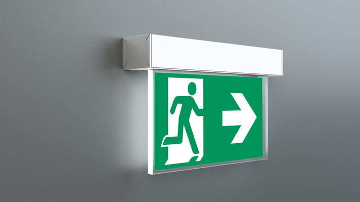 Commande et surveillance sans fil pour les petites installations de jusqu'à 50 luminaires avec Wireless Basic. Impossible de se tromper lors de la planification grâce aux pictogrammes logiques imprimés. Les pictogrammes conformes à la norme DIN ISO 7010 (flèches à droite, à gauche et en bas) sont contenus dans la livraison standard. L’impression peut également être faite sur demande en fonction des prescriptions du client.