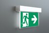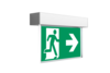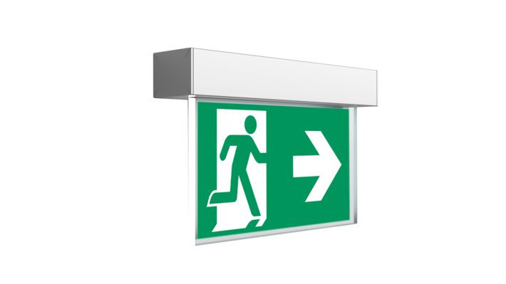 Luminaire à pictogramme de secours multifonctions en aluminium pour montage universel. Grâce à sa structure intelligente, les évidements prévus pour le passage des câbles et la fixation sont intégrés, aussi bien pour le montage au plafond que pour le montage mural. D’élégants éléments latéraux cachent le mécanisme de fermeture, ce qui donne au luminaire une impression harmonieuse et entièrement fermée.