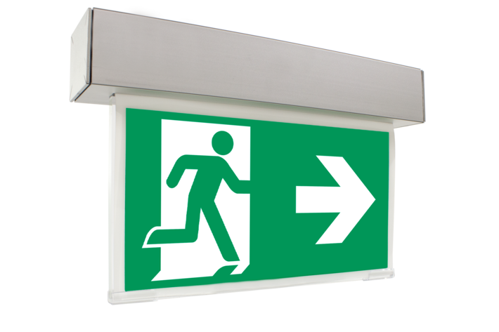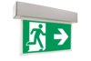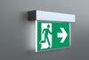 Luminaire à pictogramme de secours multifonctions en aluminium pour montage universel. Grâce à sa structure intelligente, les évidements prévus pour le passage des câbles et la fixation sont intégrés, aussi bien pour le montage au plafond que pour le montage mural. D’élégants éléments latéraux cachent le mécanisme de fermeture, ce qui donne au luminaire une impression harmonieuse et entièrement fermée.