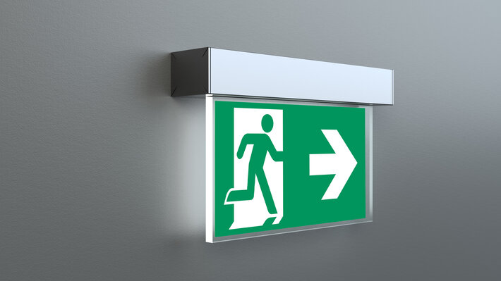 Commande et surveillance sans fil pour les petites installations de jusqu'à 50 luminaires avec Wireless Basic. Impossible de se tromper lors de la planification grâce aux pictogrammes logiques imprimés. Les pictogrammes conformes à la norme DIN ISO 7010 (flèches à droite, à gauche et en bas) sont contenus dans la livraison standard. L’impression peut également être faite sur demande en fonction des prescriptions du client.