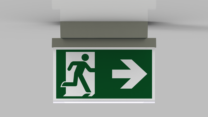 Surveillance automatique de la lampe de sécurité avec SelfControl. Impossible de se tromper lors de la planification grâce aux pictogrammes logiques imprimés. Les pictogrammes conformes à la norme DIN ISO 7010 (flèches à droite, à gauche et en bas) sont contenus dans la livraison standard. L’impression peut également être faite sur demande en fonction des prescriptions du client.