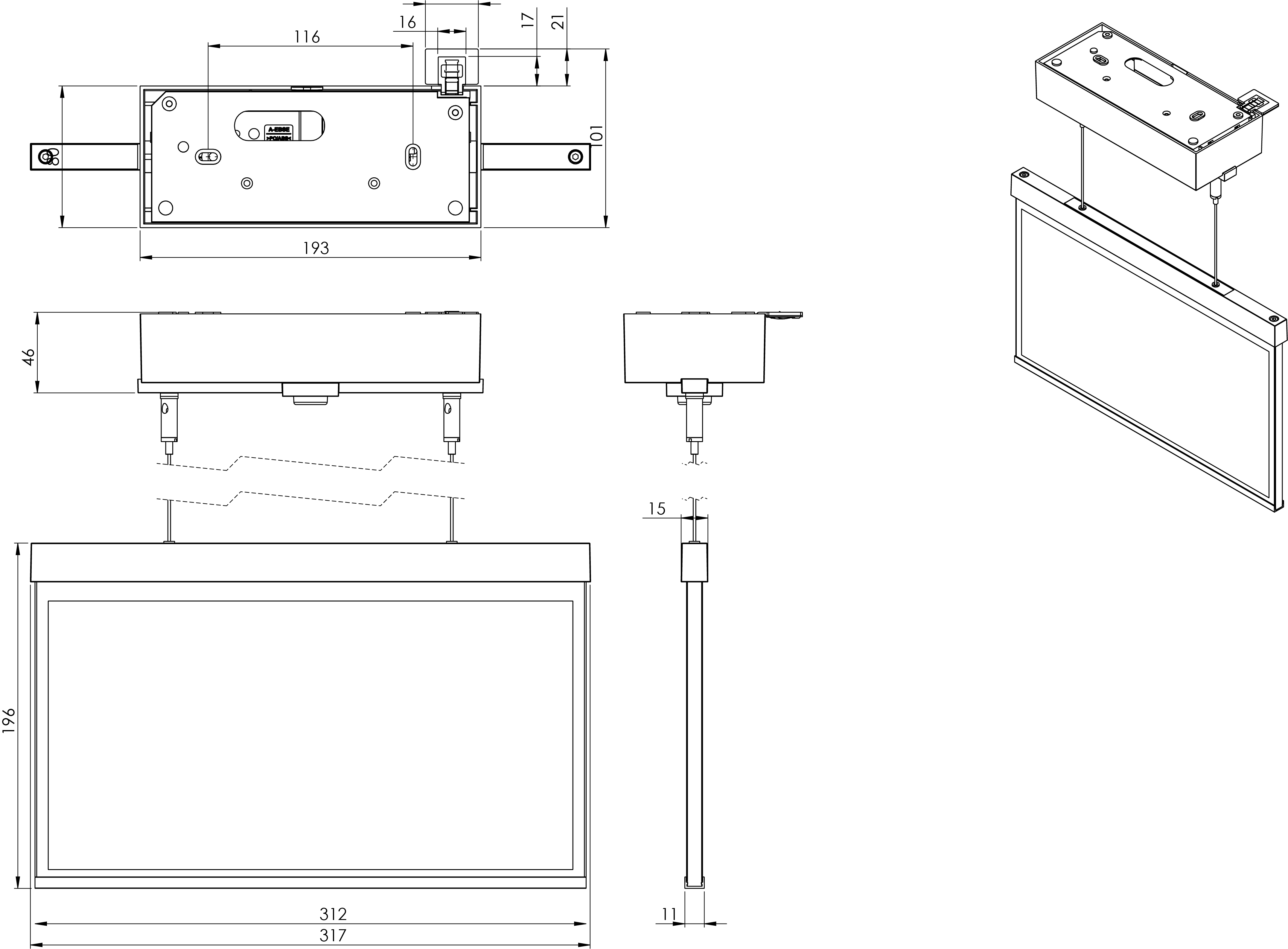 Il fait partie de la série de luminaires A, laquelle propose des systèmes pour tout type de montage et a reçu le German Design Award pour son design rectiligne homogène.
