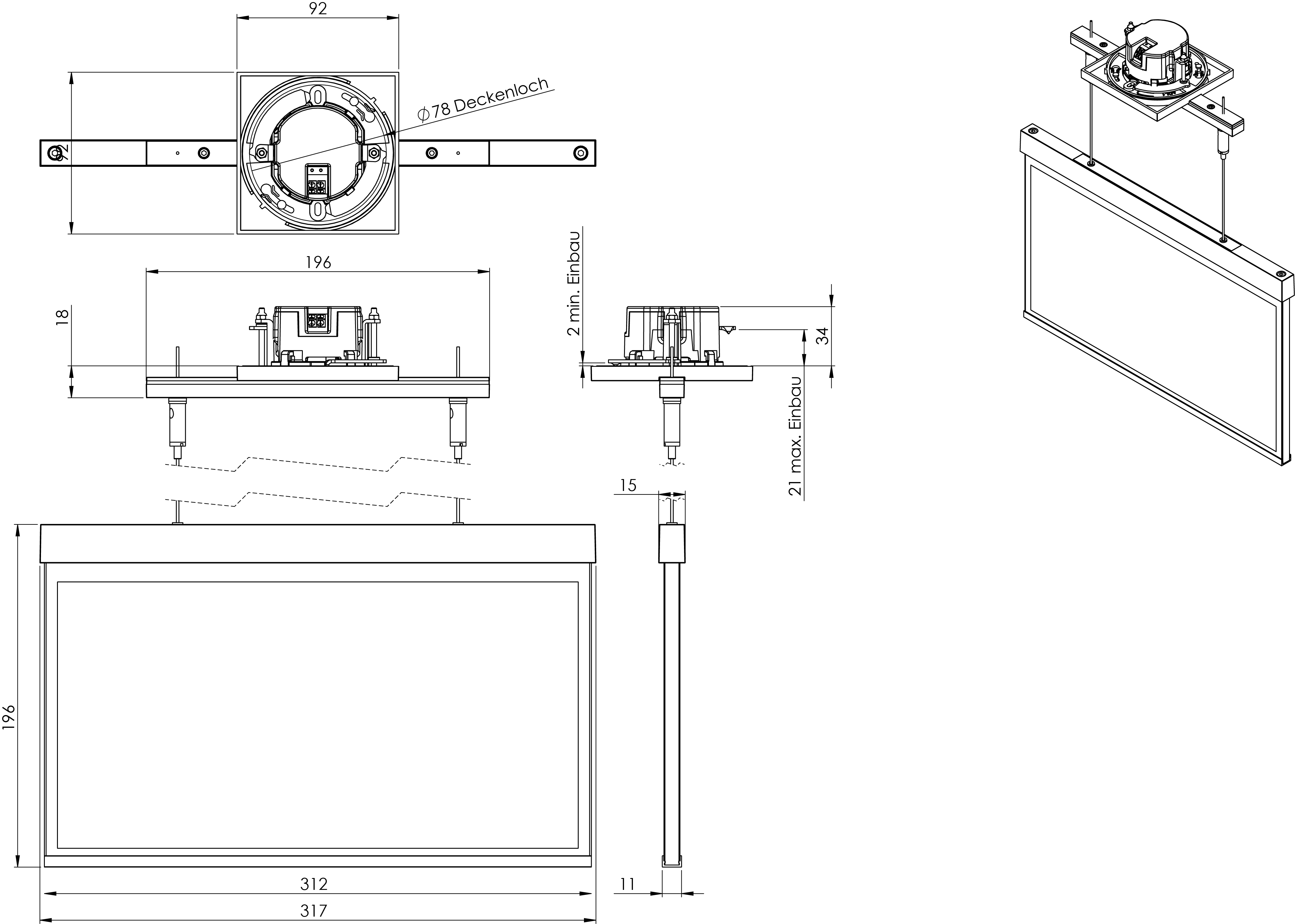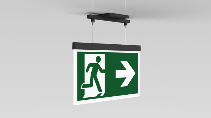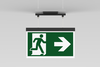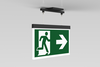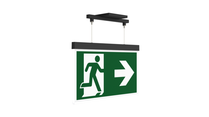 Luminaire moderne à pictogramme de secours en zinc moulé sous pression avec suspension par câble pour montage encastré au plafond. Grâce à son diamètre d’encastrement de 68 mm, ce luminaire s’intègre élégamment dans de nombreux environnements. La signalisation des issues de secours et des voies d’évacuation s’effectue au choix sur une face ou sur les deux faces.