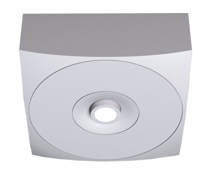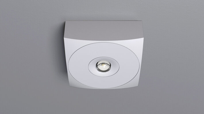 Luminaire de sécurité en zinc-aluminium de haute qualité pour montage en applique au plafond. Le luminaire de sécurité carré qui s’adapte au design du plafond.