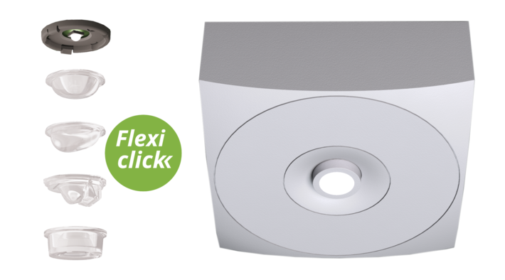 Commande et surveillance sans fil pour les petites installations de jusqu'à 50 luminaires avec Wireless Basic. Le support de lentille intégré est une innovation : il est équipé d’un dispositif de montage rapide et permet d’utiliser en toute flexibilité différents types de lentilles. Grâce à l’utilisation de la lentille correspondante, la répartition lumineuse s’adapte parfaitement à l’application et rend plus simple la signalisation lumineuse conforme aux normes. Des lentilles rondes et vestibule sont comprises dans la livraison de chaque luminaire permettant de s’adapter parfaitement aux conditions de montage sur site. D’autres lentilles (lentilles spot, faisceau ou H) sont disponibles en option.