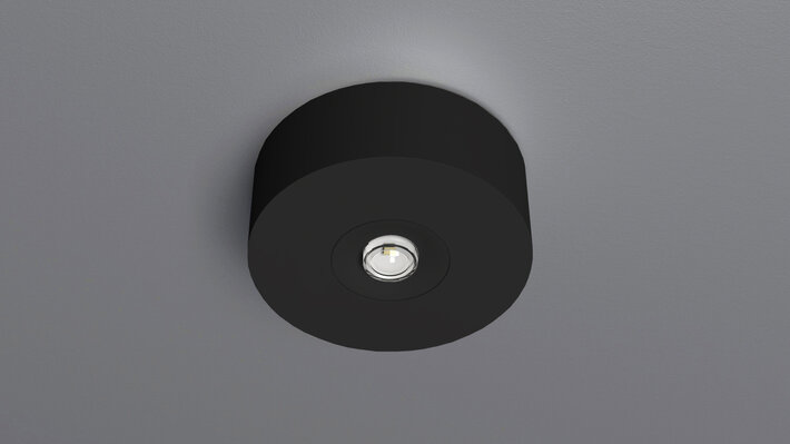 Luminaire de sécurité en zinc-aluminium de haute qualité pour montage en applique au plafond. Le luminaire de sécurité rond qui s’adapte au design du plafond.