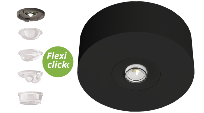 Commande et surveillance sans fil pour les petites installations de jusqu'à 50 luminaires avec Wireless Basic. Le support de lentille intégré est une innovation : il est équipé d’un dispositif de montage rapide et permet d’utiliser en toute flexibilité différents types de lentilles. Grâce à l’utilisation de la lentille correspondante, la répartition lumineuse s’adapte parfaitement à l’application et rend plus simple la signalisation lumineuse conforme aux normes. Des lentilles rondes et vestibule sont comprises dans la livraison de chaque luminaire permettant de s’adapter parfaitement aux conditions de montage sur site. D’autres lentilles (lentilles spot, faisceau ou H) sont disponibles en option.