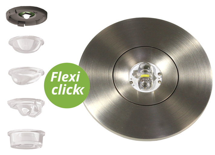 La forme de construction compacte permet un montage dans une découpe au plafond de 68 mm. Outre les montages traditionnels d’encastrement au plafond, il peut également être monté dans des boîtiers conventionnels et anti-incendie. La fixation se fait aisément à l’aide de ressorts de serrage ou d’un système à vis dans la prise.