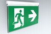 Luminaire à pictogramme de secours en plastique à vitre pour montage mural et pour la signalisation des issues de secours et des voies d’évacuation. Il s’inspire du design de la série de luminaires A, laquelle propose des systèmes pour tout type de montage et a reçu le German Design Award pour son design rectiligne homogène. Les luminaires sont équipés d’ampoules LED modernes et offrent une grande flexibilité grâce à leur système de pictogrammes variables.