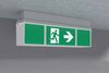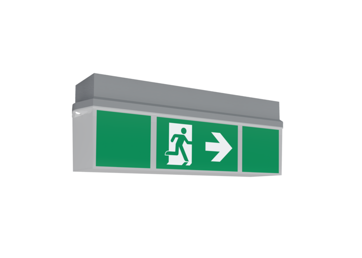 Surveillance automatique de la lampe de sécurité avec SelfControl. Impossible de se tromper lors de la planification grâce aux pictogrammes logiques imprimés. Les pictogrammes conformes à la norme DIN ISO 7010 (flèches à droite, à gauche et en bas) sont contenus dans la livraison standard. L’impression peut également être faite sur demande en fonction des prescriptions du client.