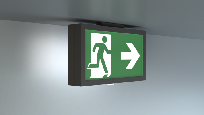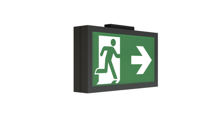 Surveillance automatique de la lampe de sécurité avec SelfControl. Impossible de se tromper lors de la planification grâce aux pictogrammes logiques imprimés. Les pictogrammes conformes à la norme DIN ISO 7010 (flèches à droite, à gauche et en bas) sont contenus dans la livraison standard. L’impression peut également être faite sur demande en fonction des prescriptions du client.