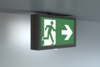 Luminaire à pictogramme de secours fin en zinc moulé sous pression avec design moderne pour montage au plafond. Pour marquage monoface ou biface.
