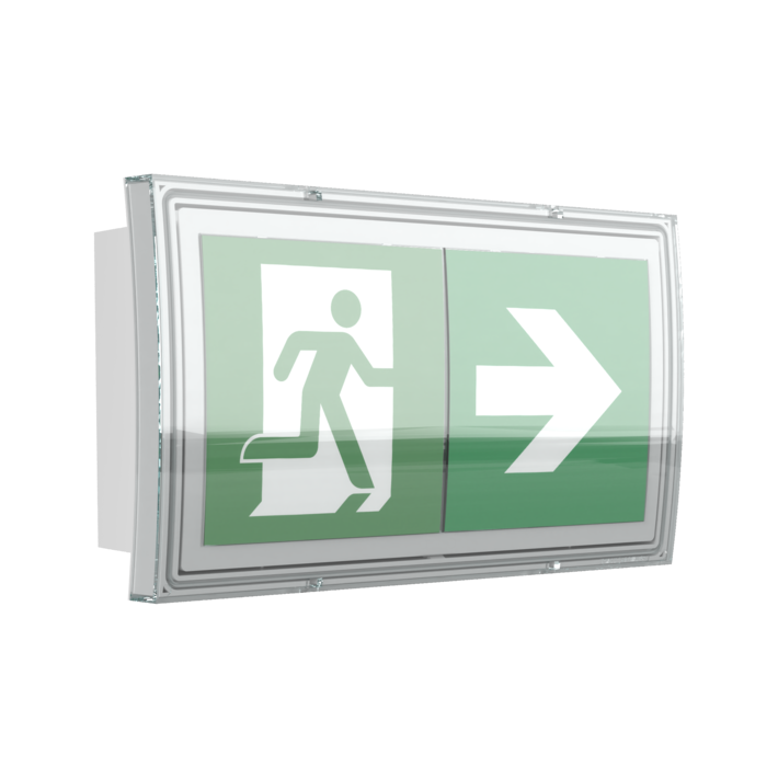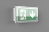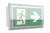 Luminaire à pictogramme de secours à LED en plastique avec bandeau de forme convexe pour montage mural.
